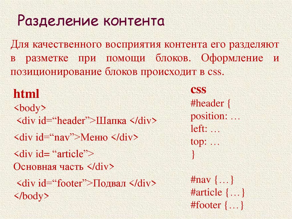 Разделение контентаДля качественного восприятия контента его разделяют