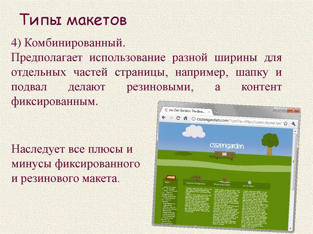 Типы макетов4) Комбинированный.