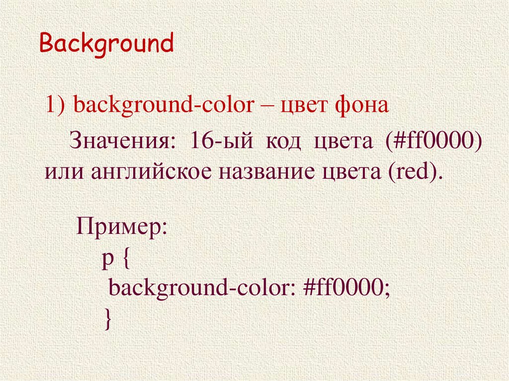 Background1) background-color – цвет фона