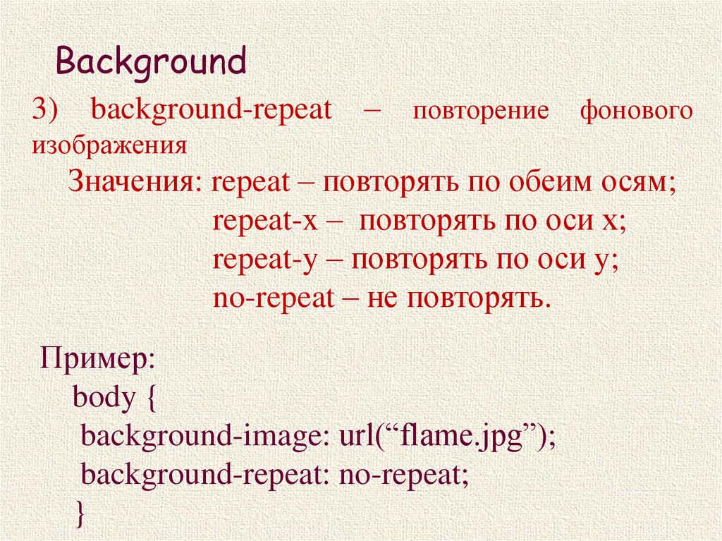 Background3) background-repeat – повторение фонового
