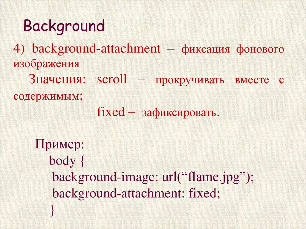 Background4) background-attachment – фиксация фонового