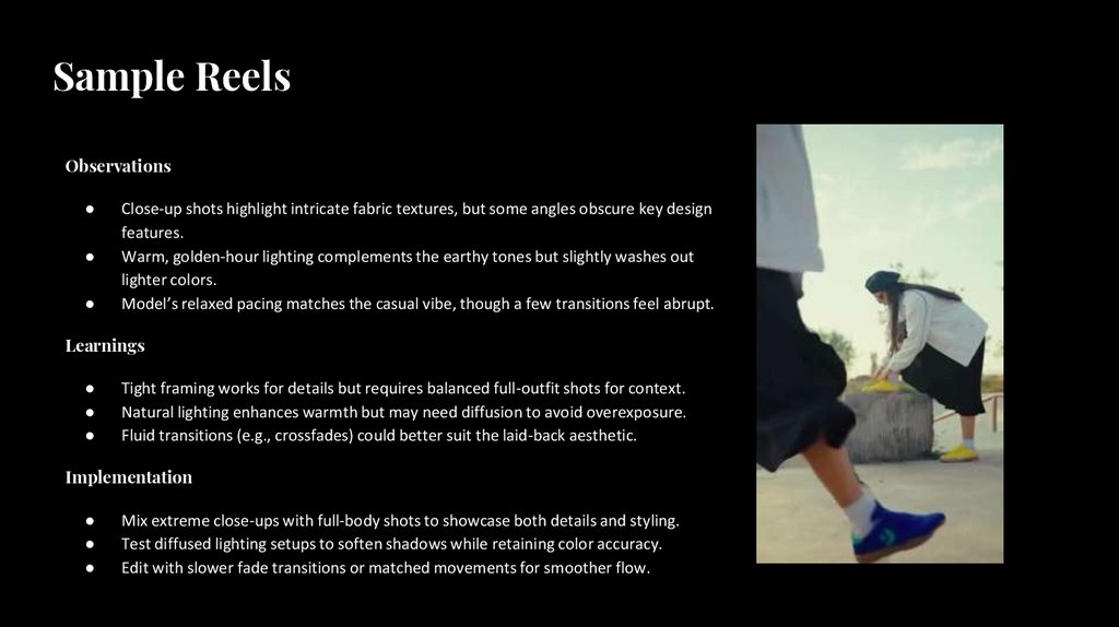 Mix extreme close-ups with full-body shots to showcase both details and styling.
