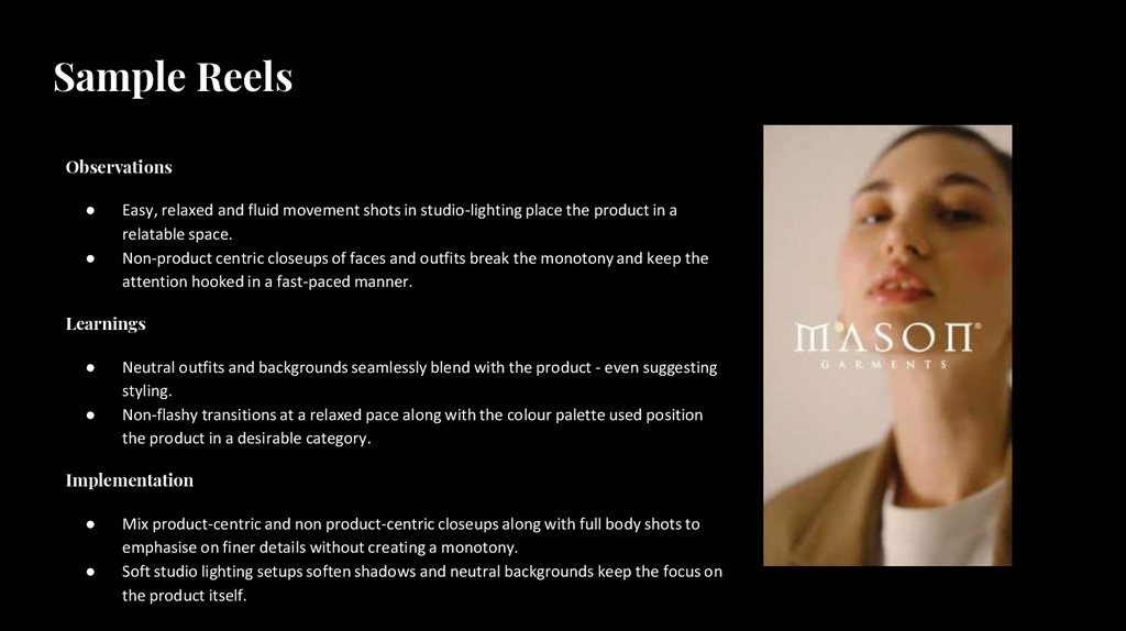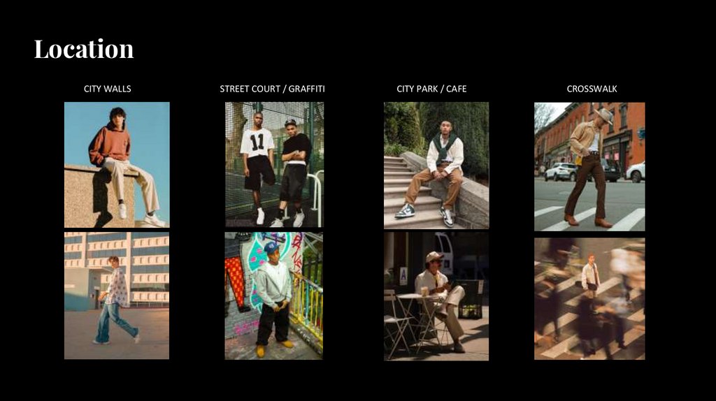 Non-product centric closeups of faces and outfits break the monotony and keep the
