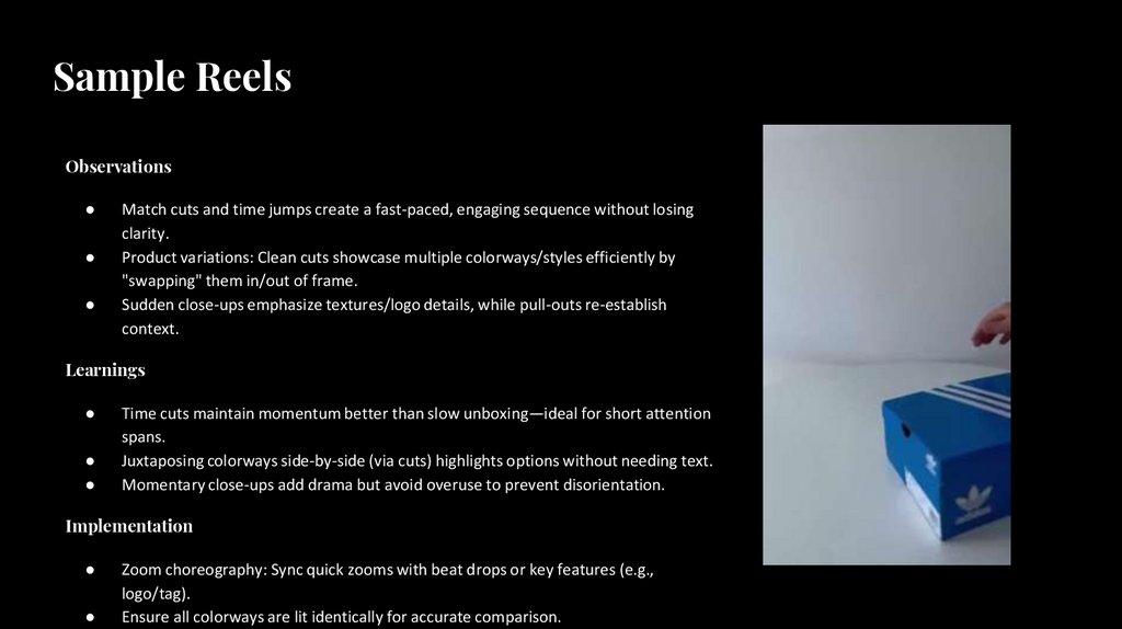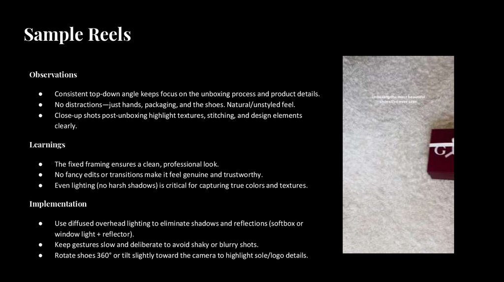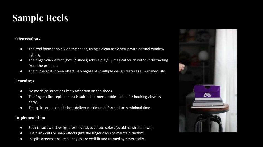 The reel focuses solely on the shoes, using a clean table setup with natural window