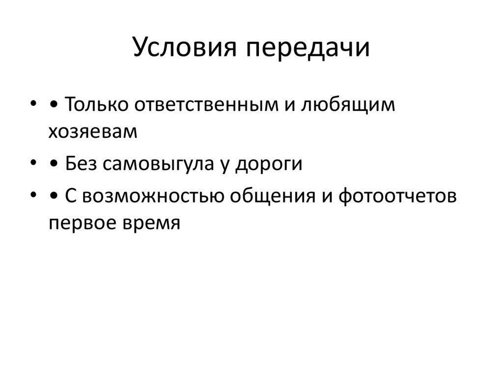 Условия передачи• • Только ответственным и любящим