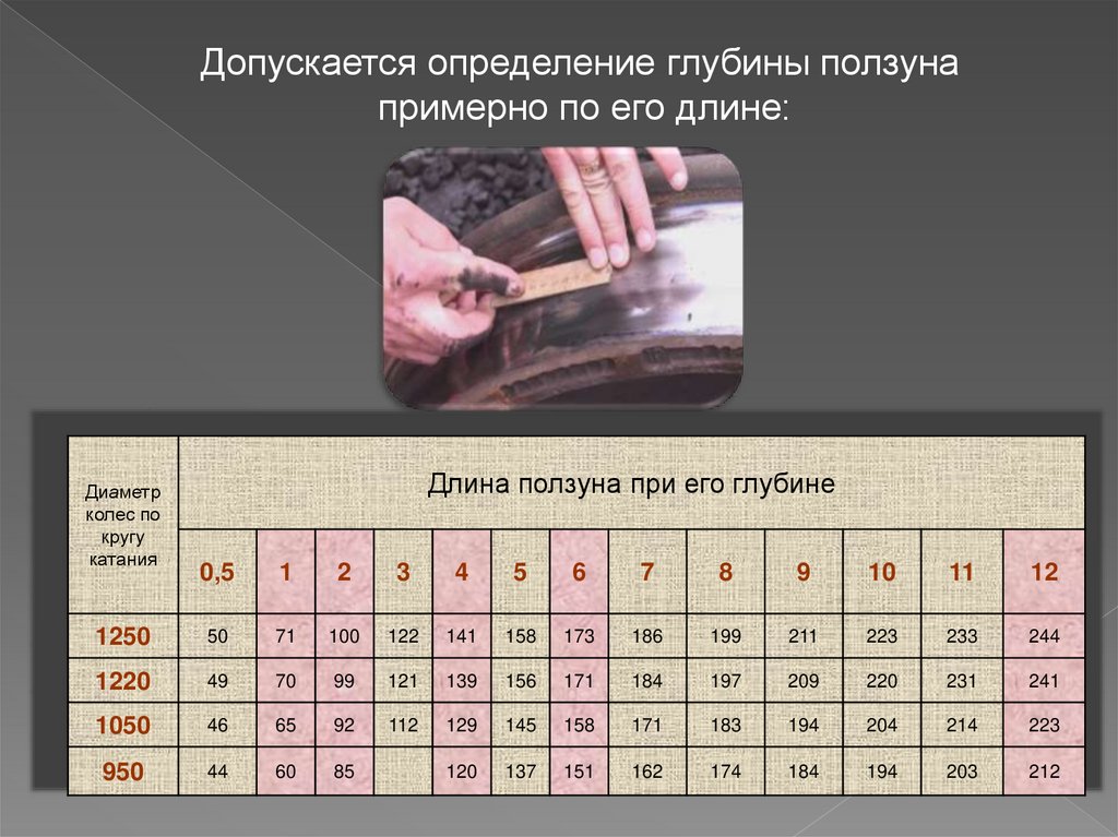 При глубине ползуна на тепловозе 2-4мм, а на вагоне 6-12мм