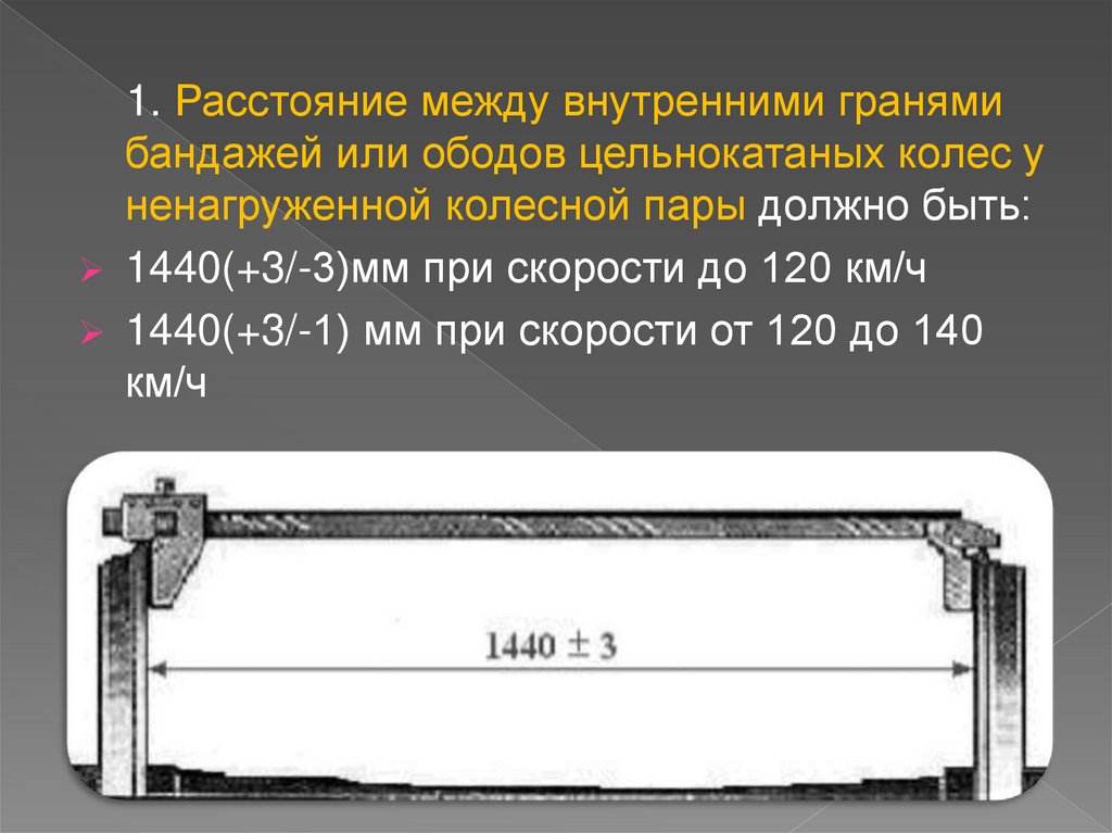 1. Расстояние между внутренними гранямибандажей или ободов цельнокатаных колес у