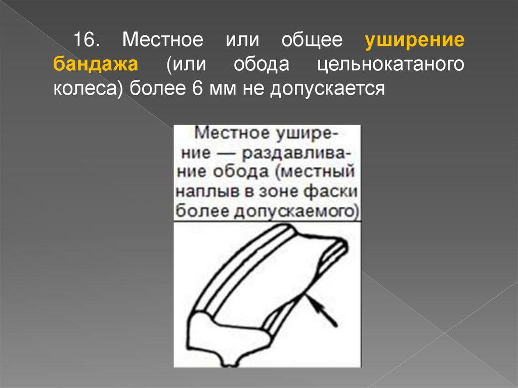 16. Местное или общее уширениебандажа (или обода цельнокатаного