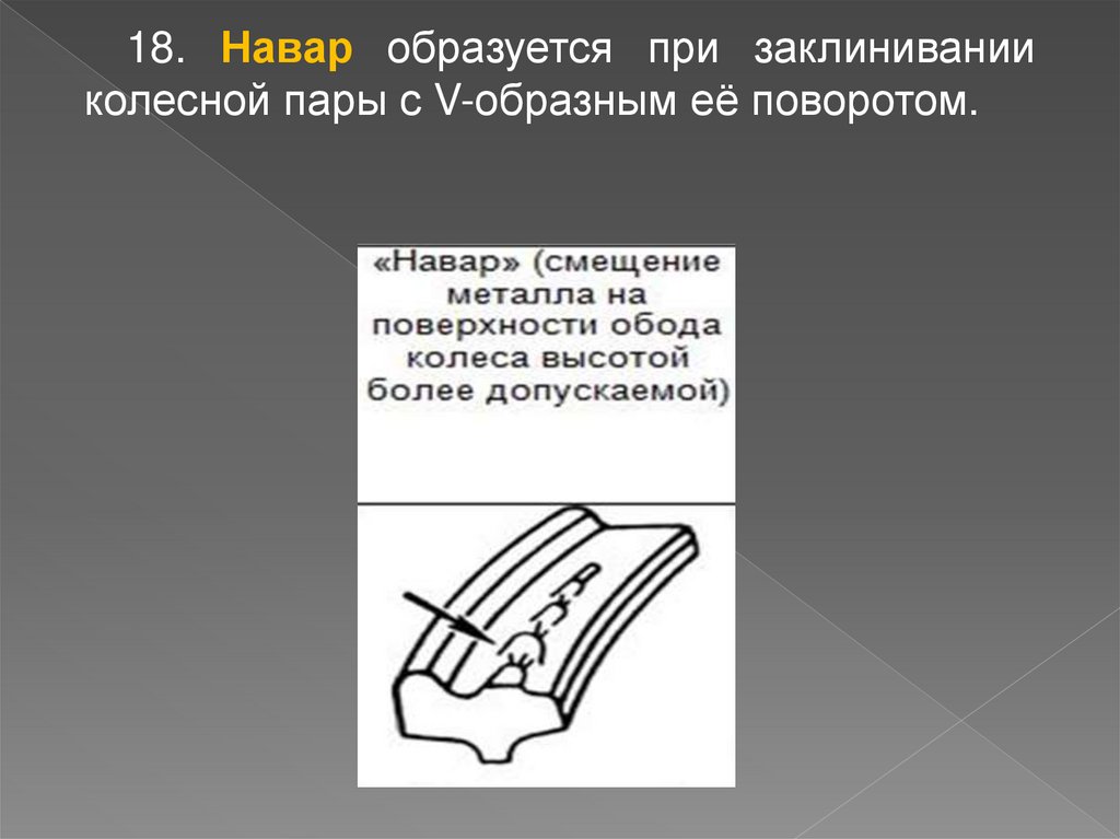 18. Навар образуется при заклиниванииколесной пары с V-образным её поворотом.