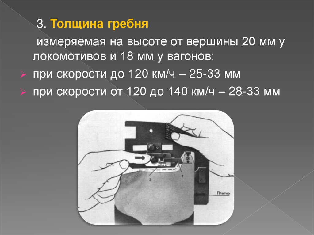 3. Толщина гребняизмеряемая на высоте от вершины 20 мм у