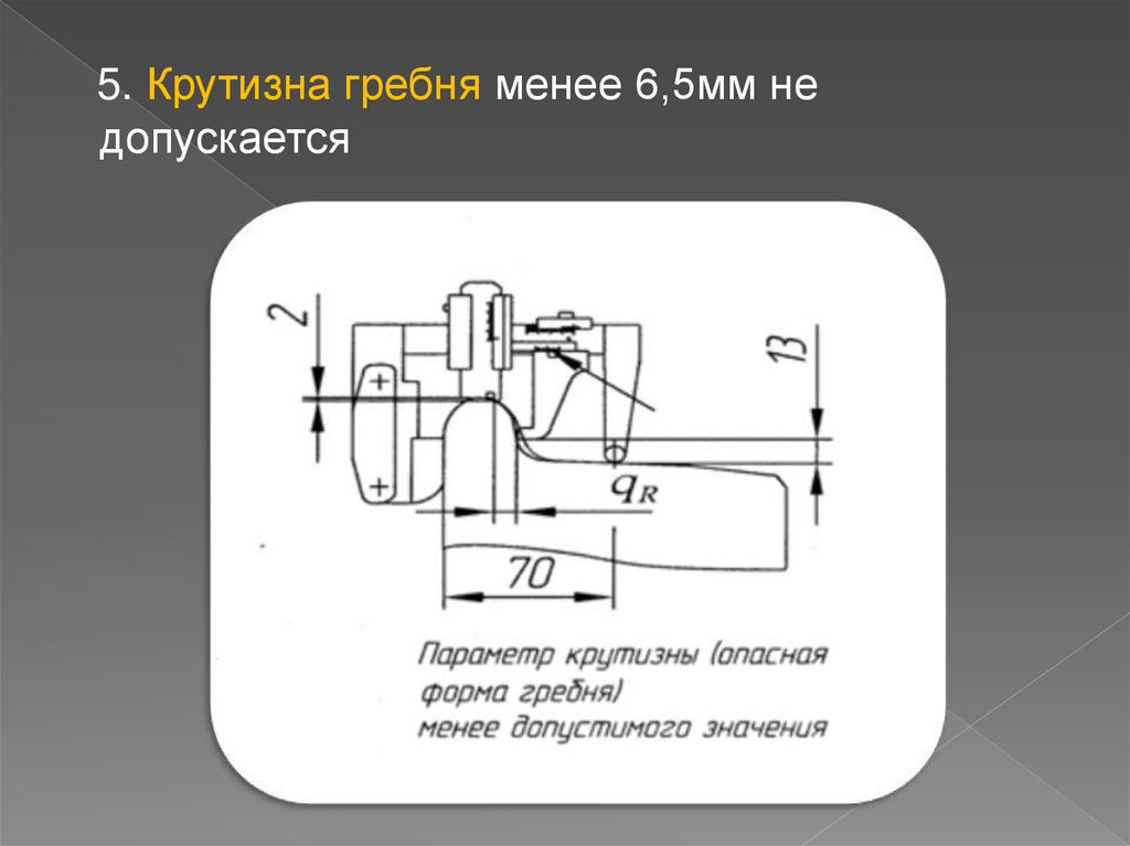 5. Крутизна гребня менее 6,5мм недопускается