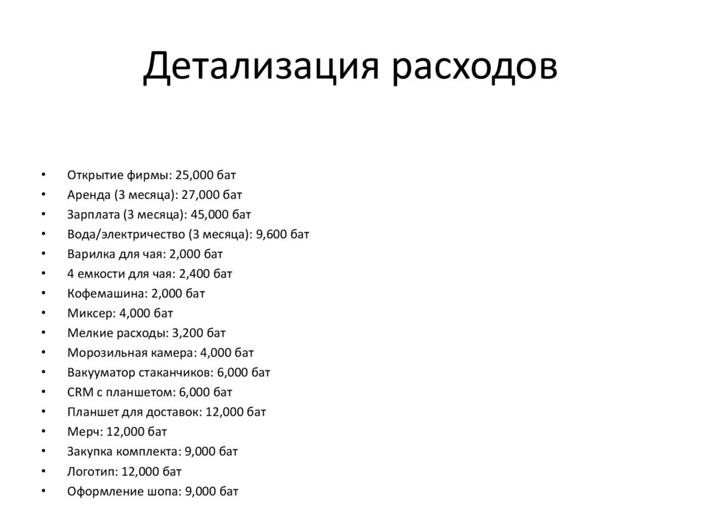 Детализация расходовОткрытие фирмы: 25,000 бат