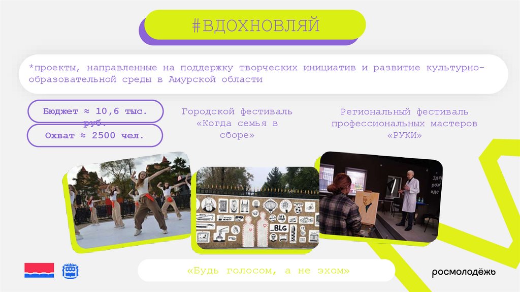 #ВДОХНОВЛЯЙ*проекты, направленные на поддержку творческих инициатив и развитие культурнообразовательной среды в Амурской области