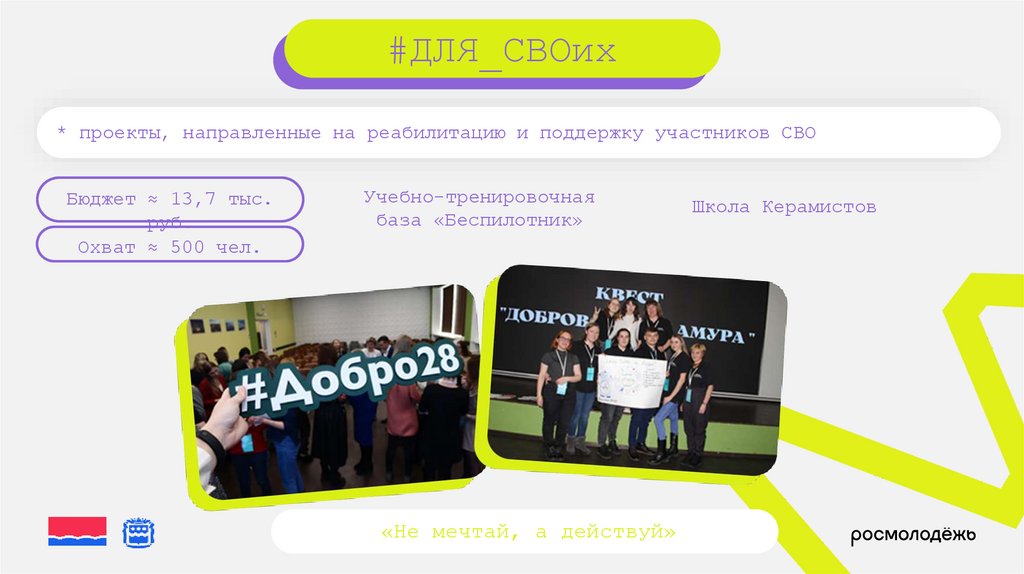 #ДЛЯ_СВОих* проекты, направленные на реабилитацию и поддержку участников СВО