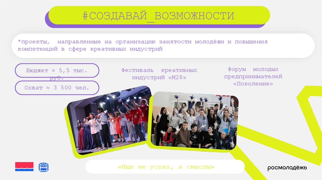 #СОЗДАВАЙ_ВОЗМОЖНОСТИ*проекты, направленные на организацию занятости молодёжи и повышения