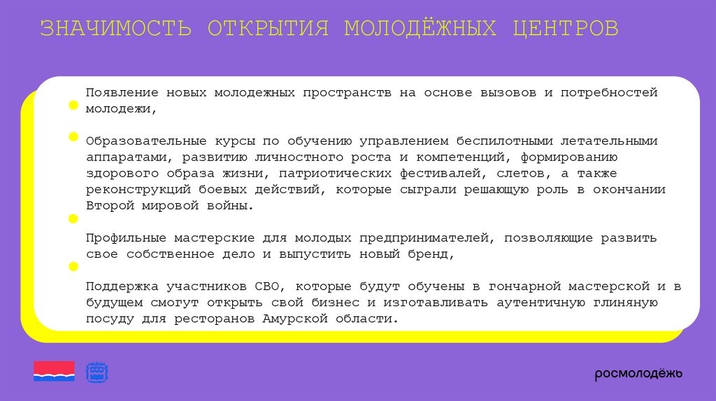 ЗНАЧИМОСТЬ ОТКРЫТИЯ МОЛОДЁЖНЫХ ЦЕНТРОВПоявление новых молодежных пространств на основе вызовов и потребностей