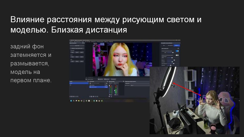 Влияние расстояния между рисующим светом имоделью. Близкая дистанция