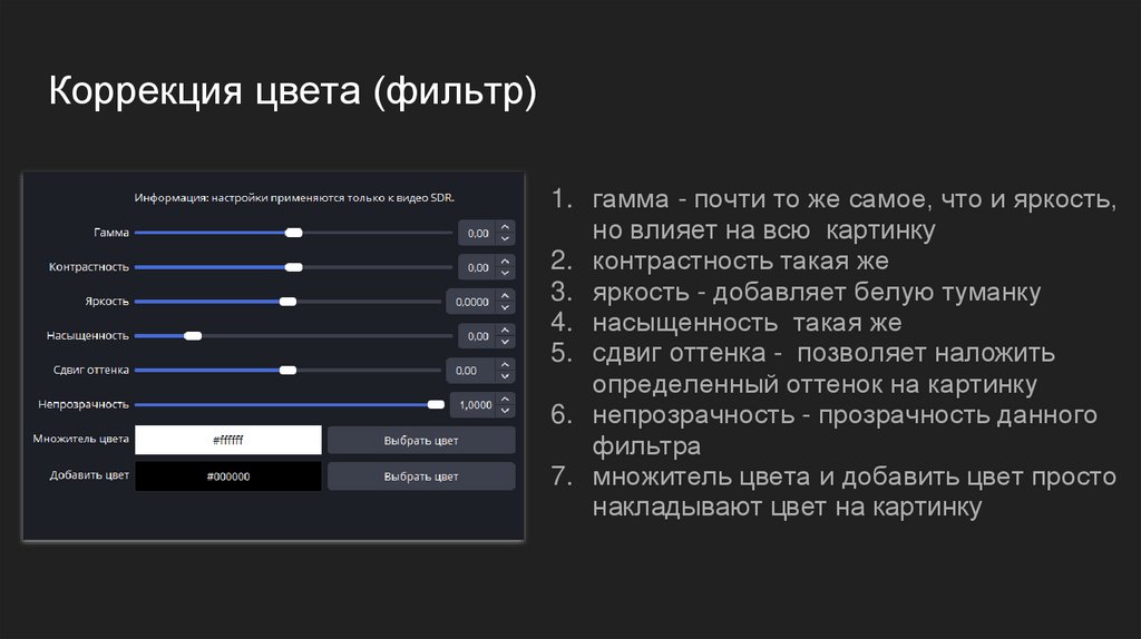 Коррекция цвета (фильтр)1. гамма - почти то же самое, что и яркость,