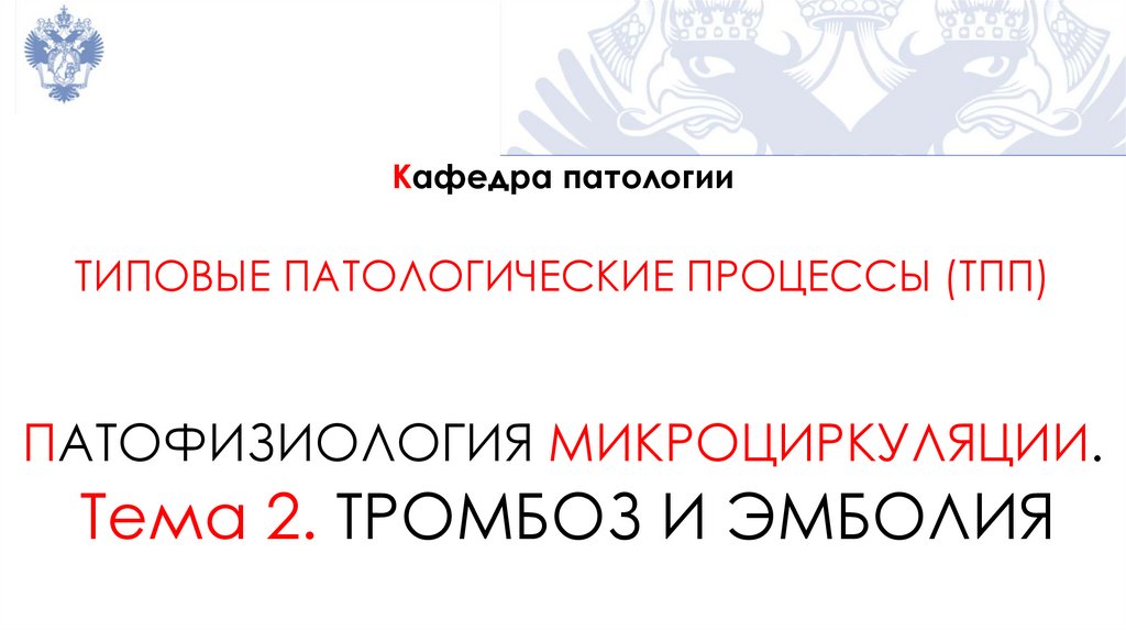 Тема 2. ТРОМБОЗ И ЭМБОЛИЯ