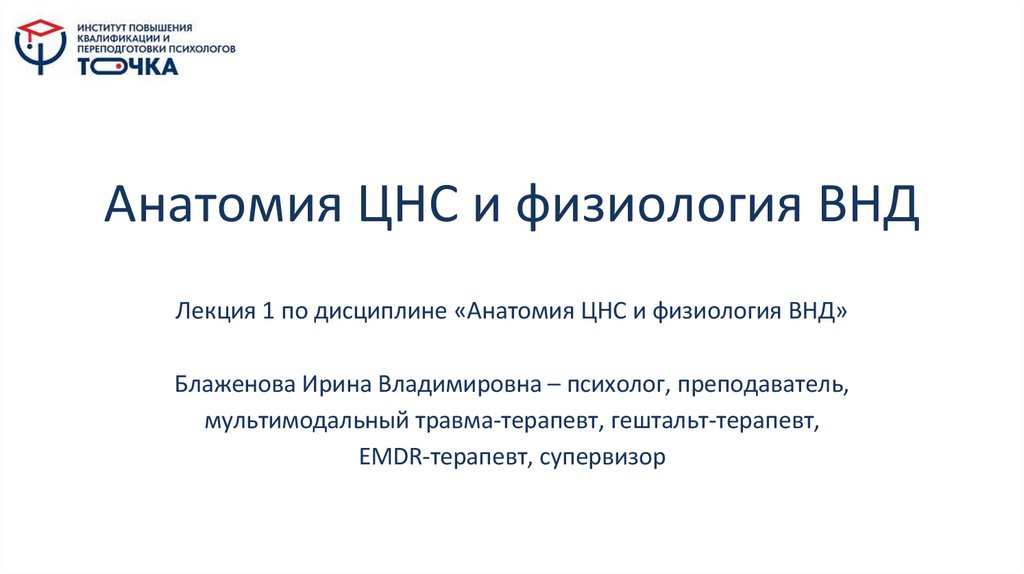 Лекция 1 по дисциплине «Анатомия ЦНС и физиология ВНД»Блаженова Ирина Владимировна – психолог, преподаватель,
