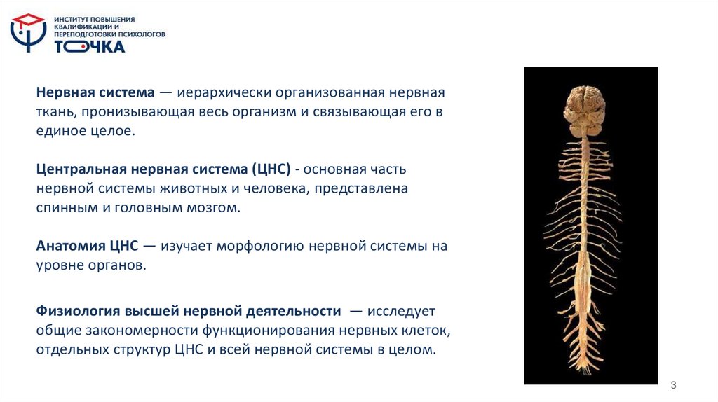 Нервная система — иерархически организованная нервнаяткань, пронизывающая весь организм и связывающая его в