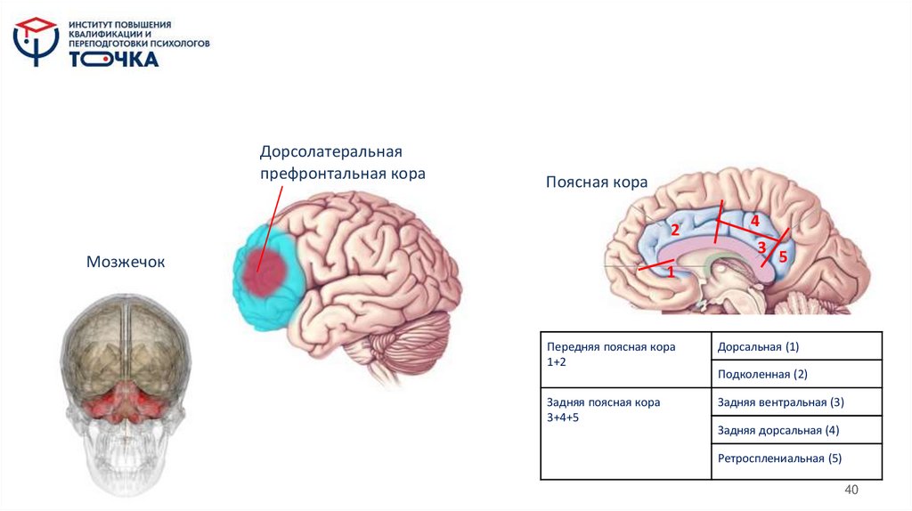 Префронтальная кора (9, 10, 11, 12)Сложные когнитивные функции