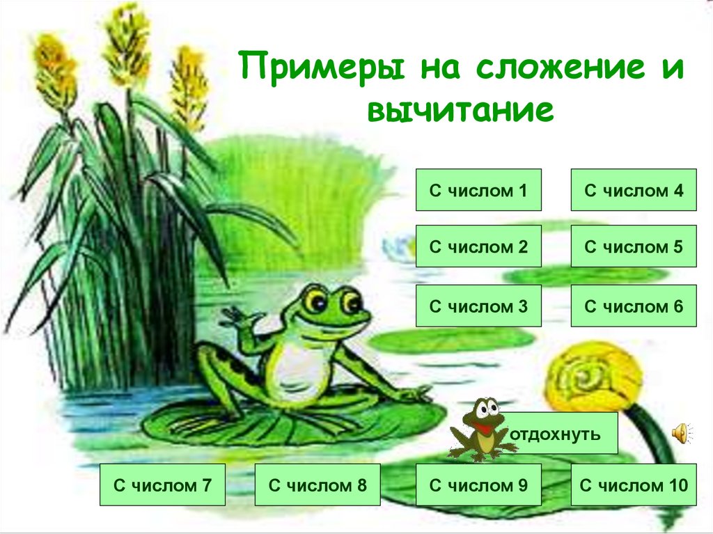 http://www.parkov3.narod.ru/sound/11/004.mp3 - звуки лягушкиhttp://parkov3.narod.ru/sound/11/005.mp3 - звуки лягушки