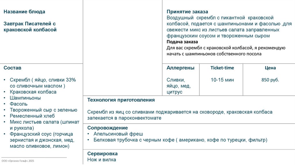 Скрембл из яиц со сливками поджаривается на сковороде, краковская колбаса
