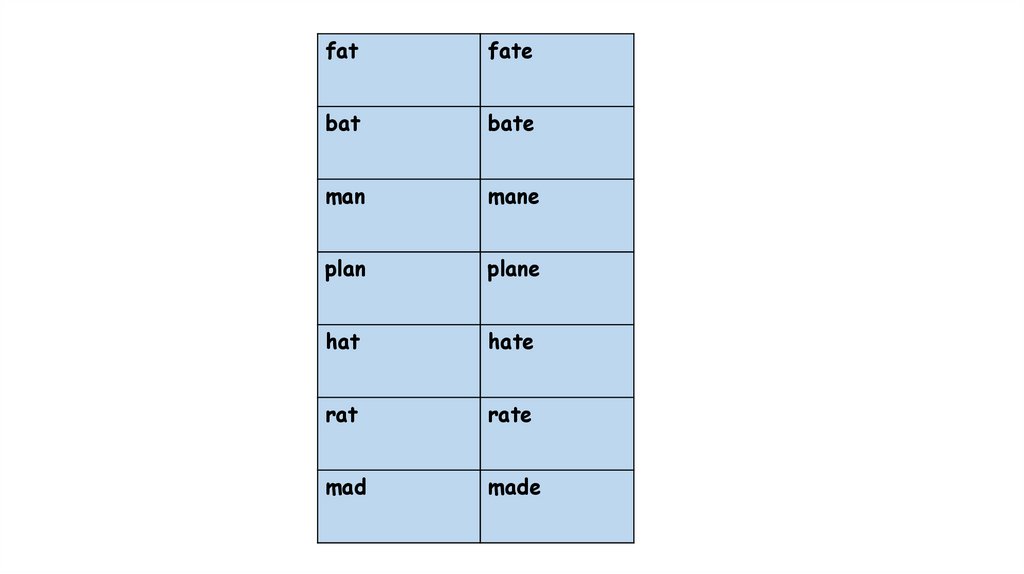 Fat, fate. Bat, bate