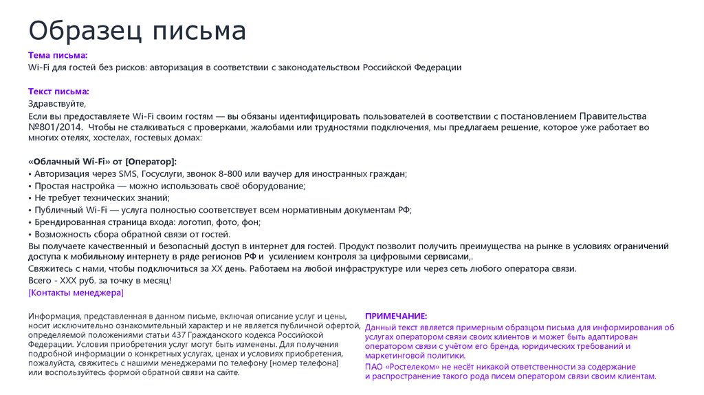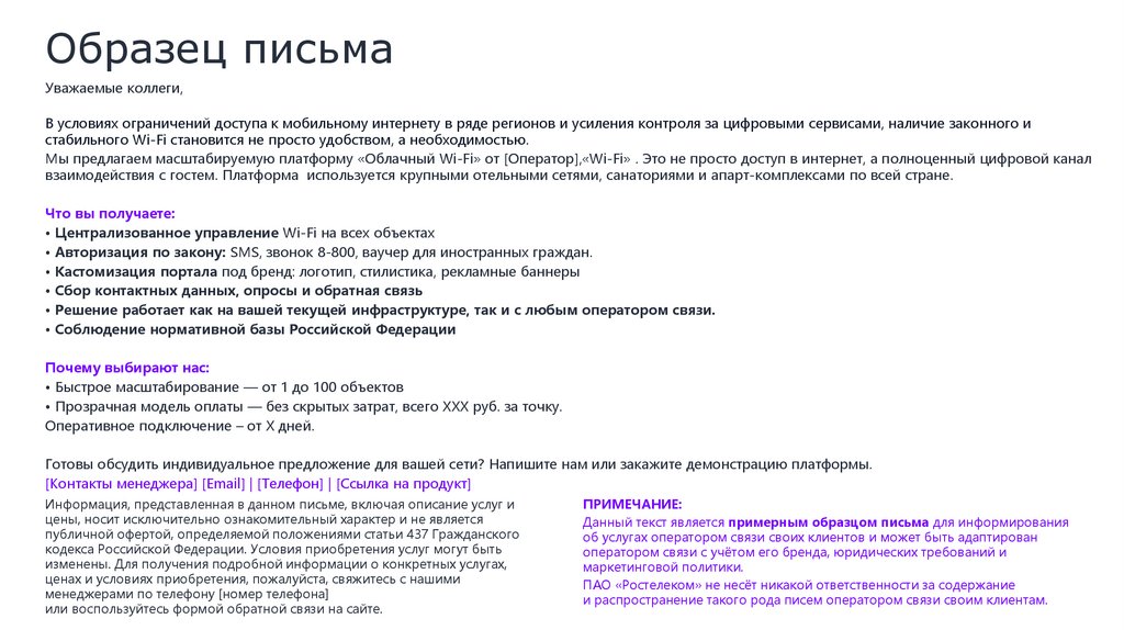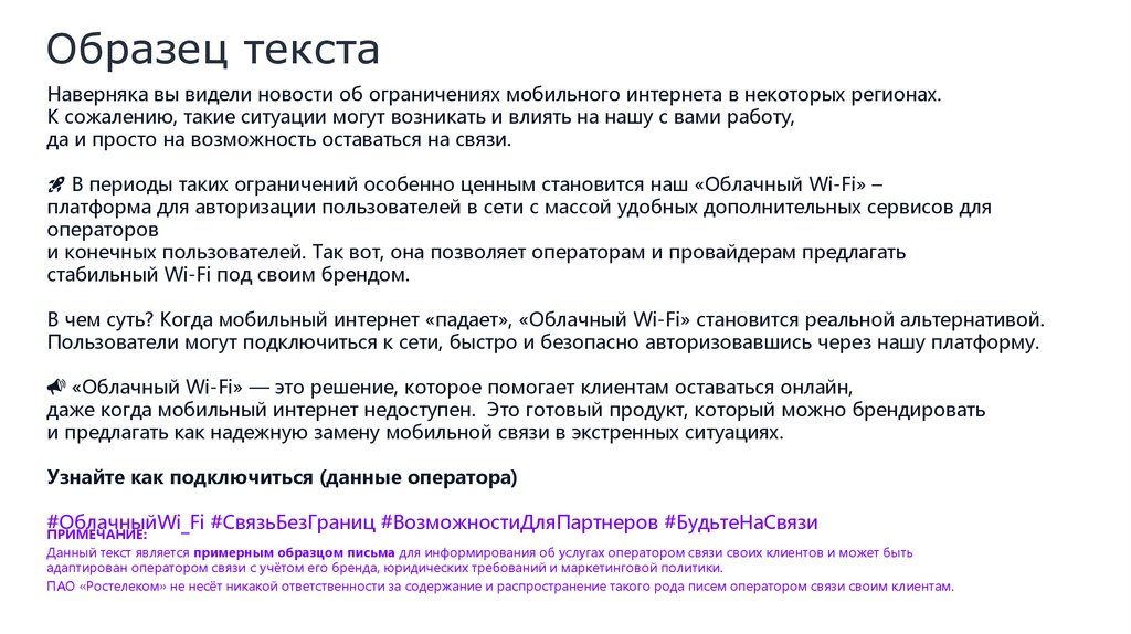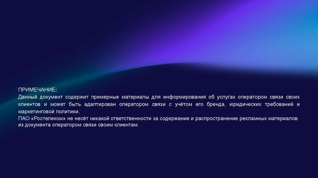 ПРИМЕЧАНИЕ:Данный документ содержит примерные материалы для информирования об услугах оператором связи своих