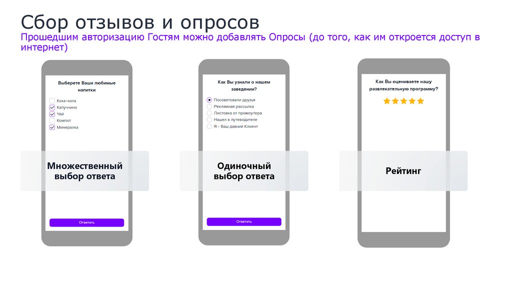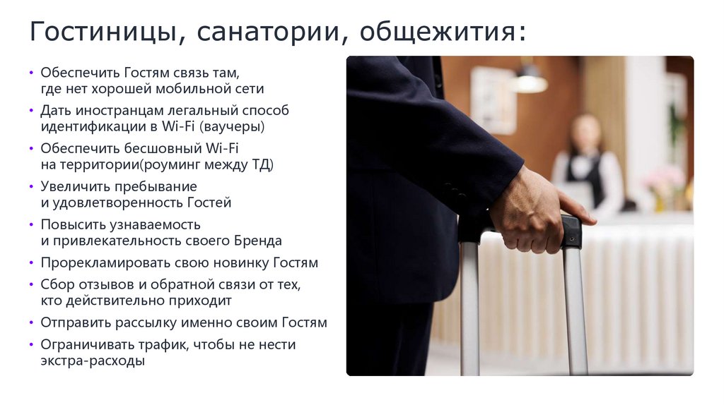 Вы получаете качественный и безопасный доступ в интернет для гостей. Продукт позволит получить преимущества на рынке в условиях ограничений