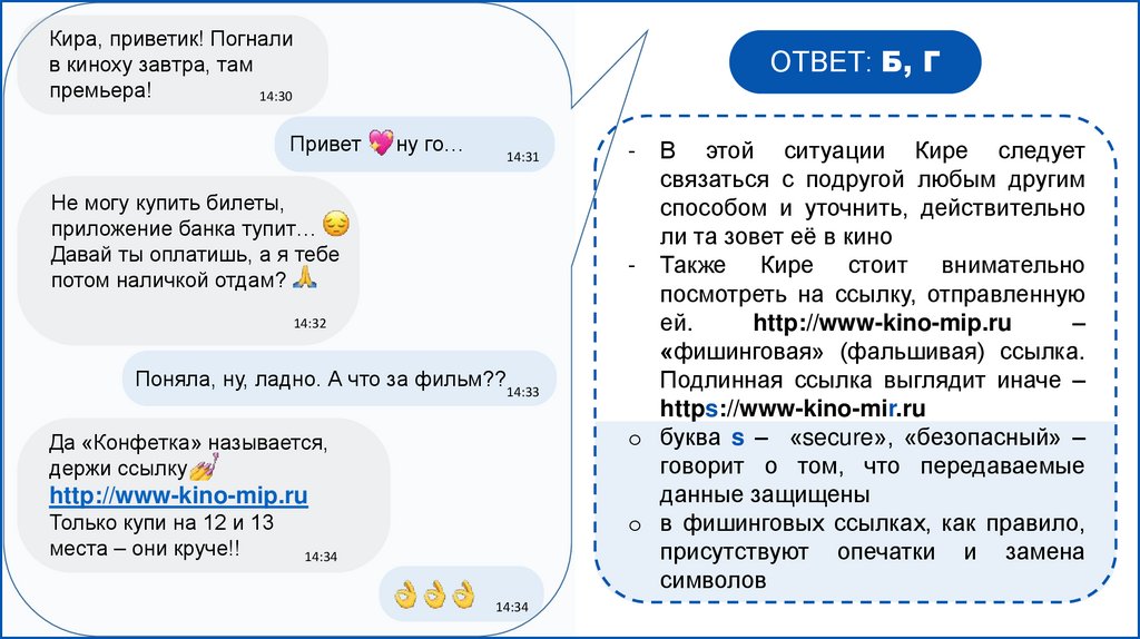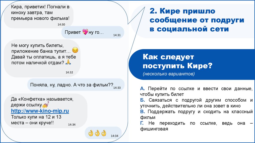 Д. Предложение обратиться на сайт, созданный специально для школьников, которых обманули