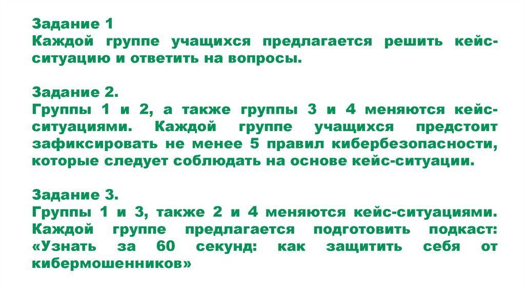 Группы 1 и 3, также 2 и 4 меняются кейс-ситуациями.
