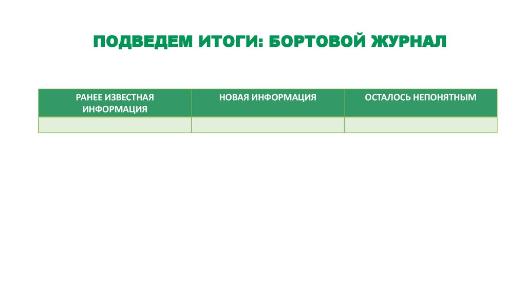 ПОДВЕДЕМ ИТОГИ: БОРТОВОЙ ЖУРНАЛРАНЕЕ ИЗВЕСТНАЯ