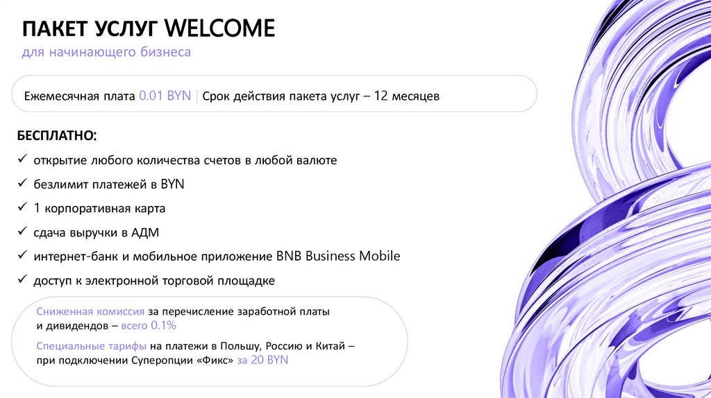 ПАКЕТ УСЛУГ WELCOMEдля начинающего бизнеса