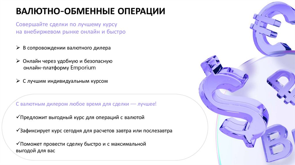 ВАЛЮТНО-ОБМЕННЫЕ ОПЕРАЦИИСовершайте сделки по лучшему курсу