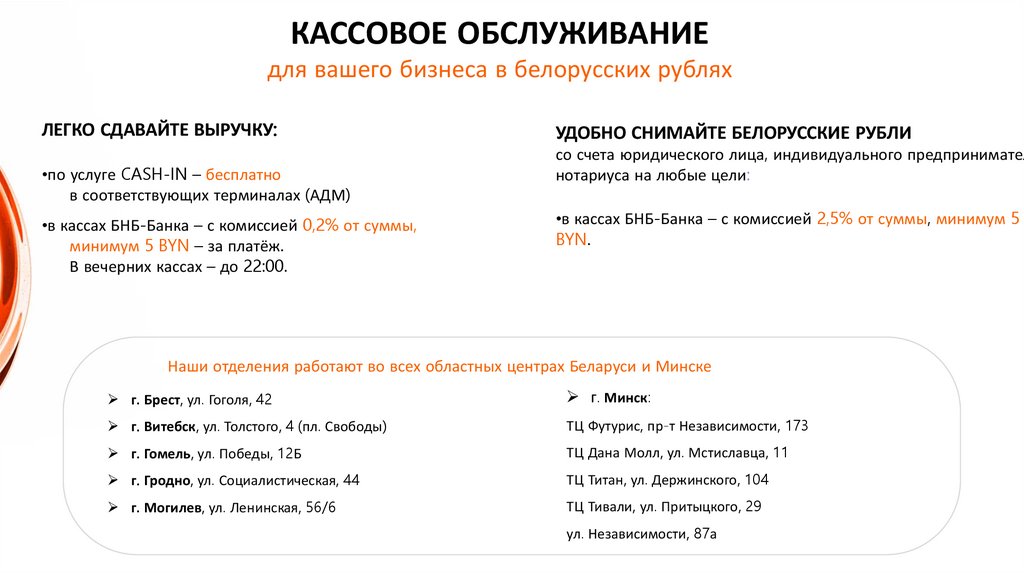 КАССОВОЕ ОБСЛУЖИВАНИЕдля вашего бизнеса в белорусских рублях