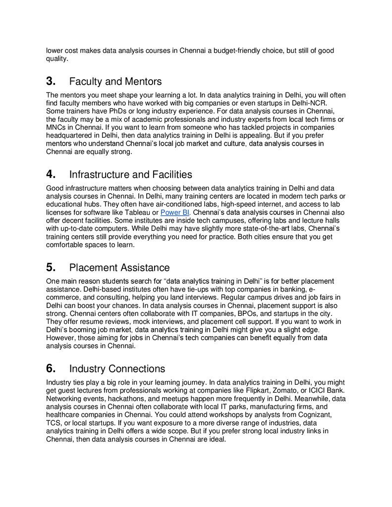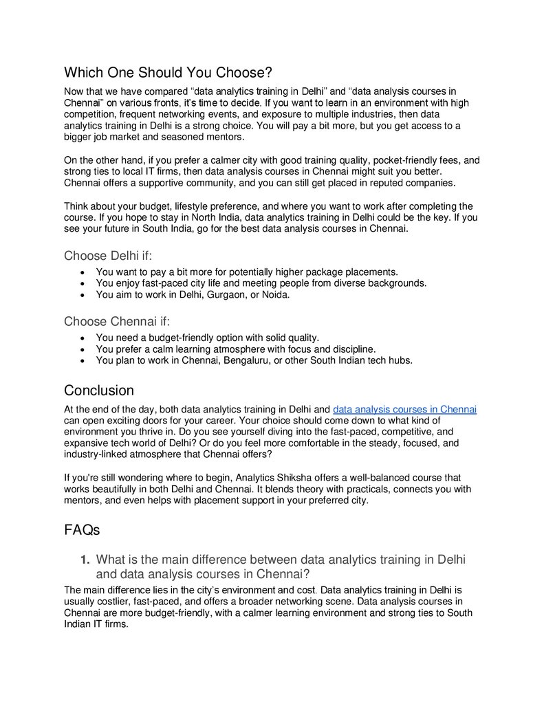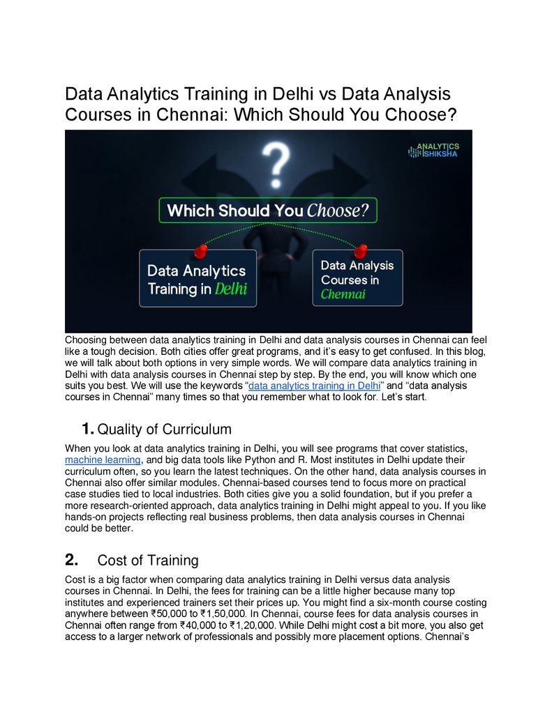 Choosing between data analytics training in Delhi and data analysis courses in Chennai can feel