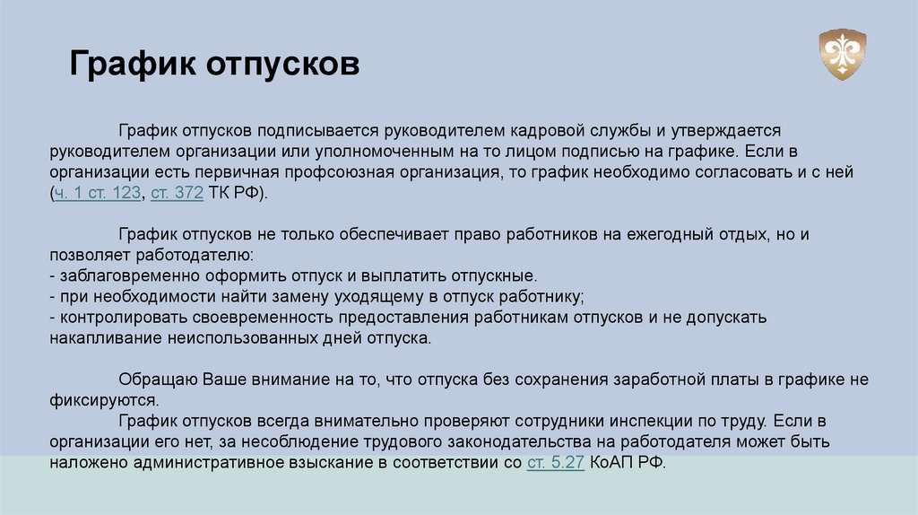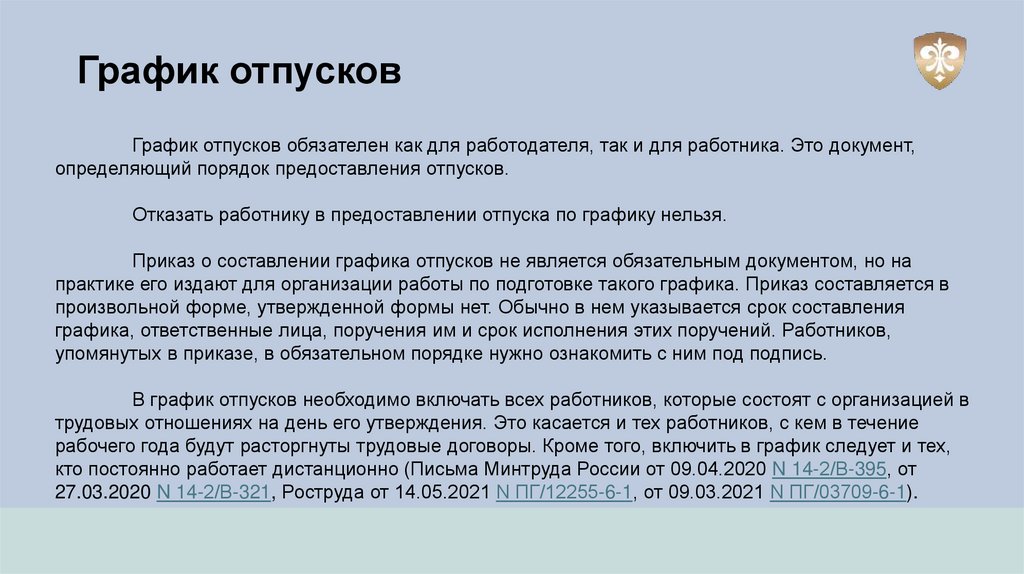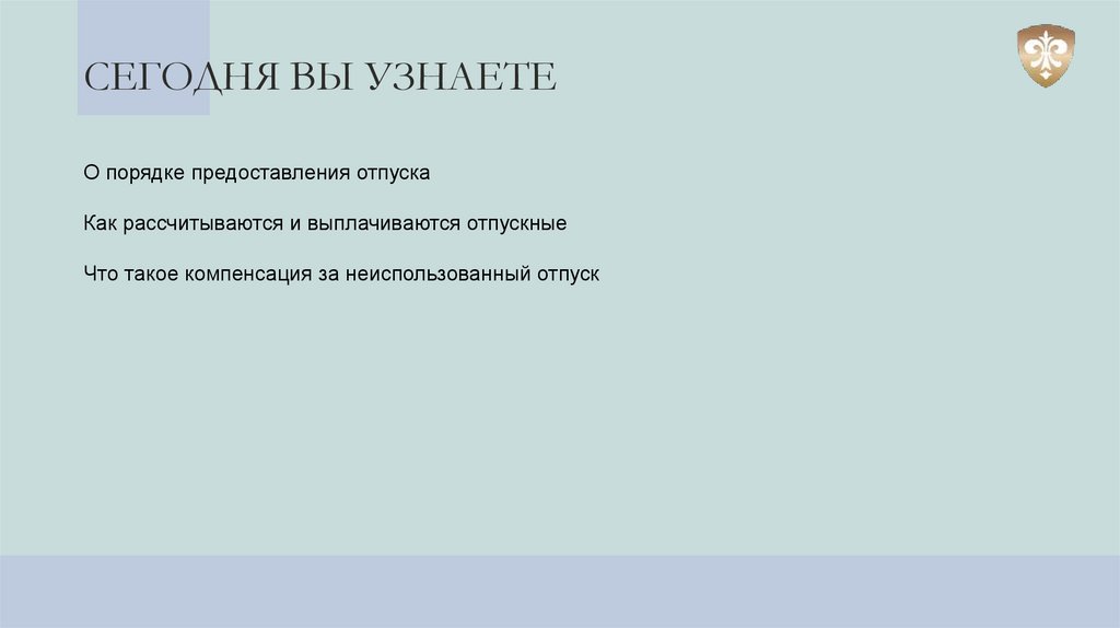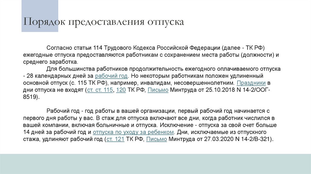 СЕГОДНЯ ВЫ УЗНАЕТЕО порядке предоставления отпуска