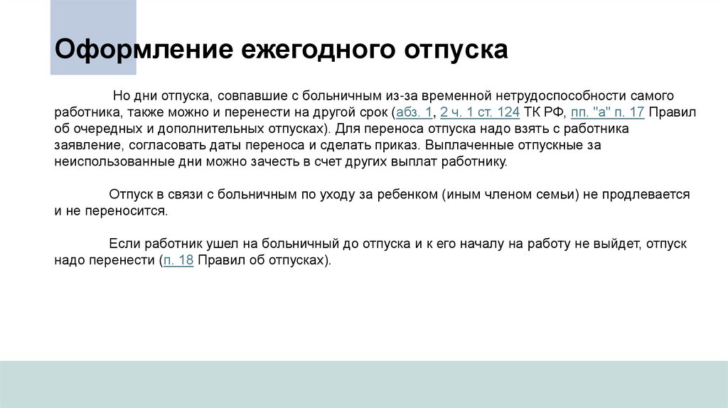 об очередных и дополнительных отпусках). Для переноса отпуска надо взять с работника