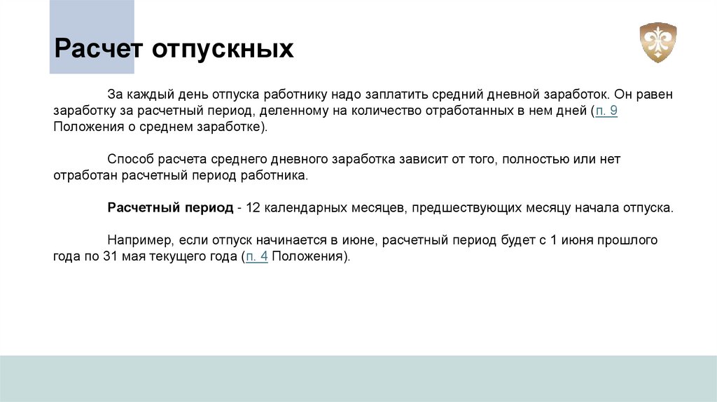 Например, если отпуск начинается в июне, расчетный период будет с 1 июня прошлого