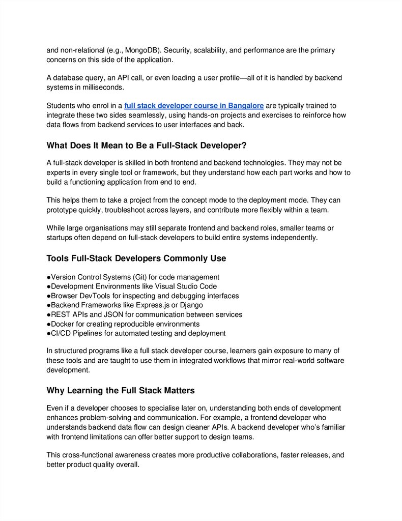 prepare you for a wide range of roles. A well-rounded full stack developer course in Bangalore