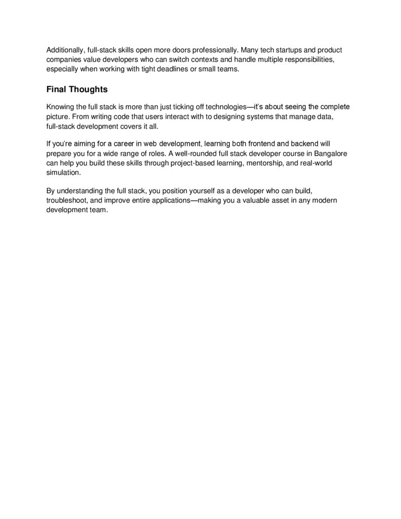 Additionally, full-stack skills open more doors professionally. Many tech startups and productcompanies value developers who can switch contexts and handle multiple responsibilities,