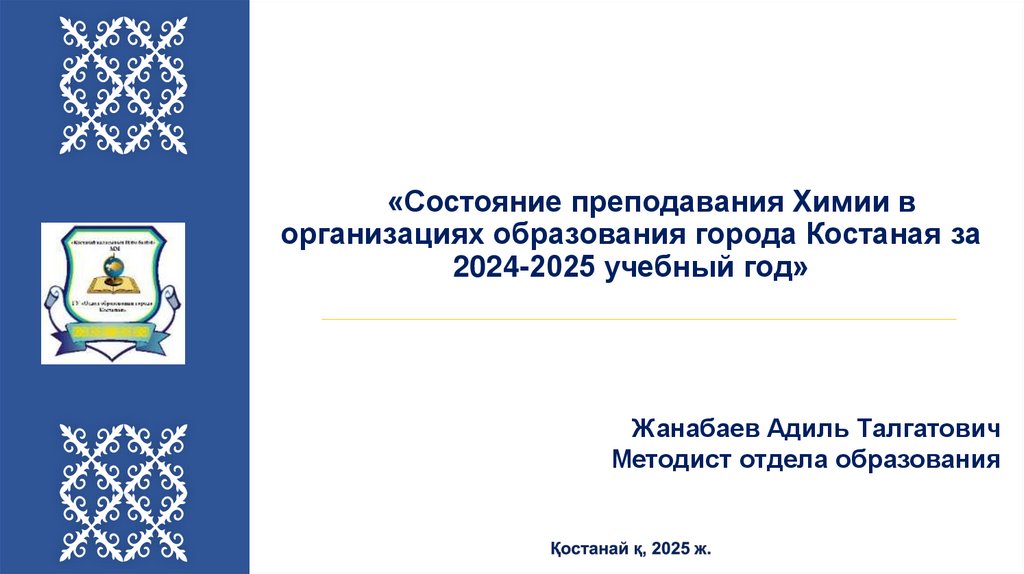 1. «Состояние преподавания Химии в организациях образования города Костаная за 2024-2025 учебный год»