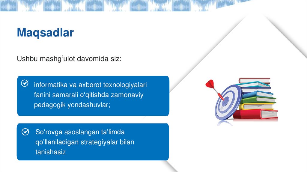 MaqsadlarUshbu mashg‘ulot davomida siz: