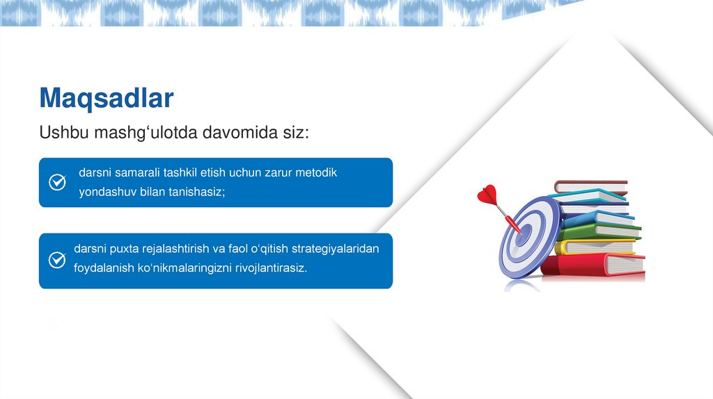 MaqsadlarUshbu mashg‘ulotda davomida siz: