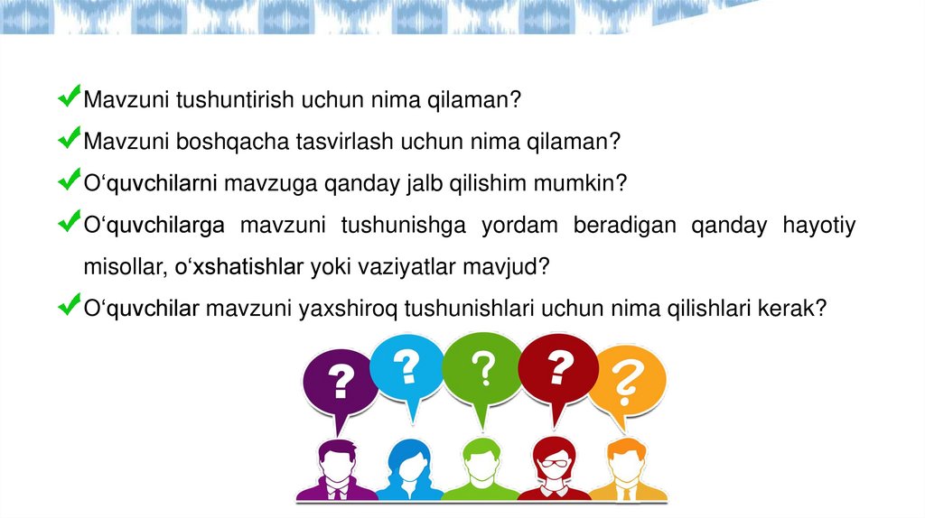 Mavzuni tushuntirish uchun nima qilaman?Mavzuni boshqacha tasvirlash uchun nima qilaman?