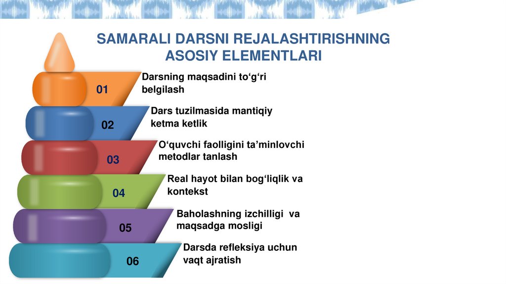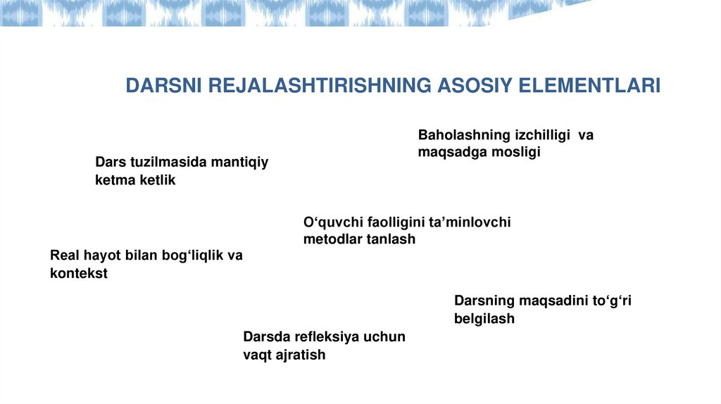 SAMARALI DARSNI REJALASHTIRISHNINGASOSIY ELEMENTLARI