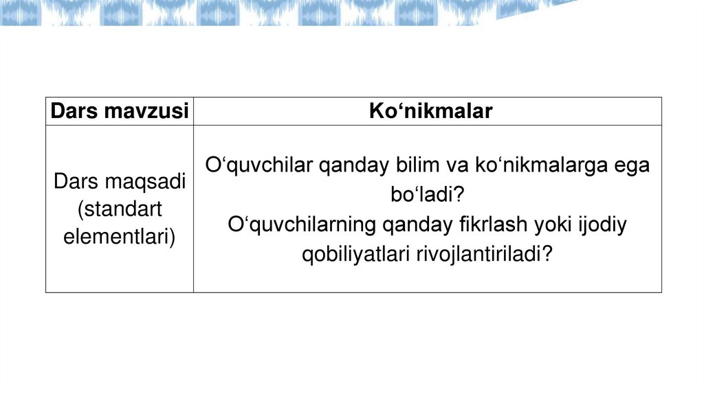 DARS MAQSADIDarsga qo‘yilgan maqsad