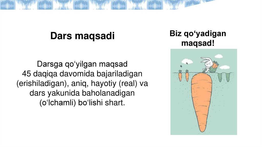 Dars maqsadiDarsga qo‘yilgan maqsad